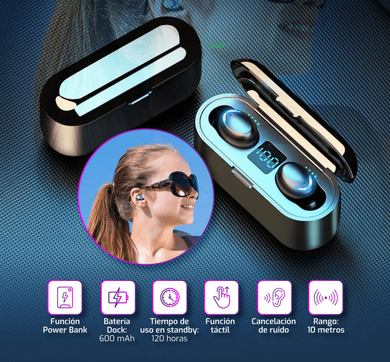 Manos libres inalambricos bluetooth con estuche de carga 600mAh.